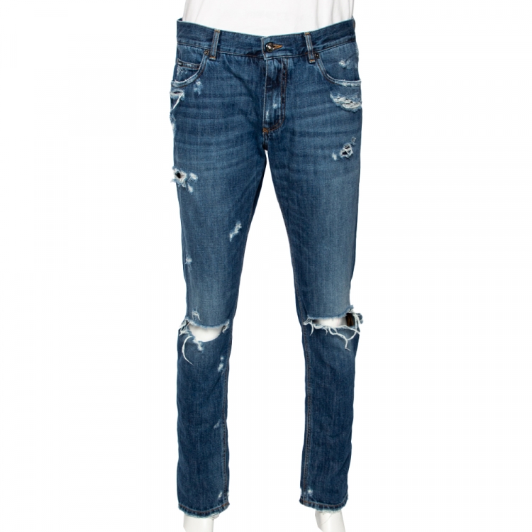 Pre Owned بنطلون جينز دولتشي & غابانا دنيم أزرق ممزق بقصة عادية مقاس كبير - لارج