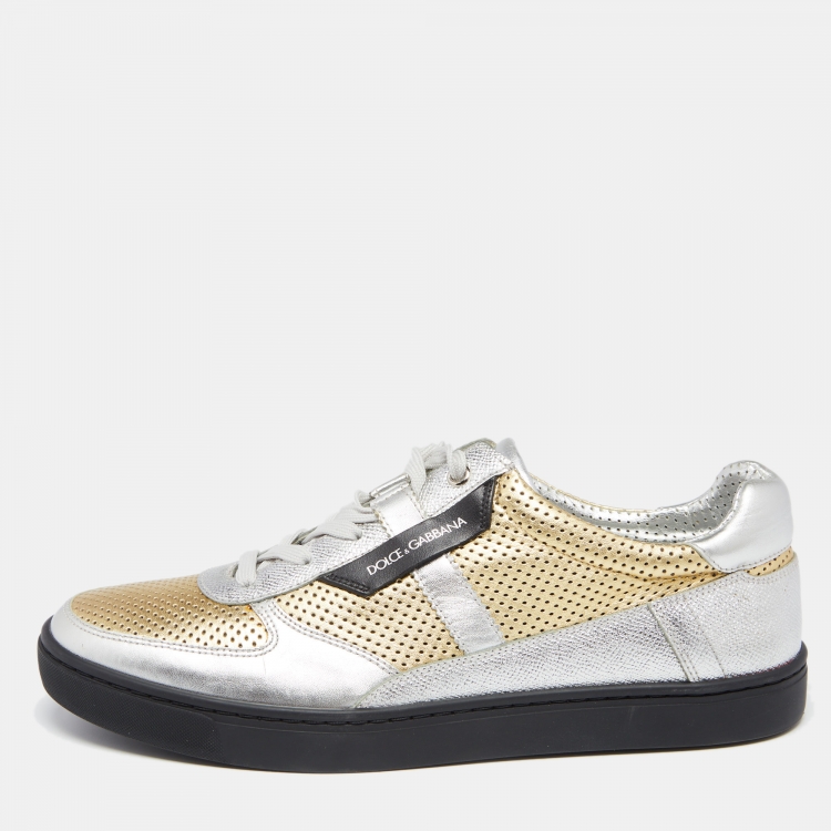 مملوكة مسبقًا حذاء رياضي دولتشي آند غابانا جلد مثقب ذهبي / فضي بعنق منخفض مقاس 42