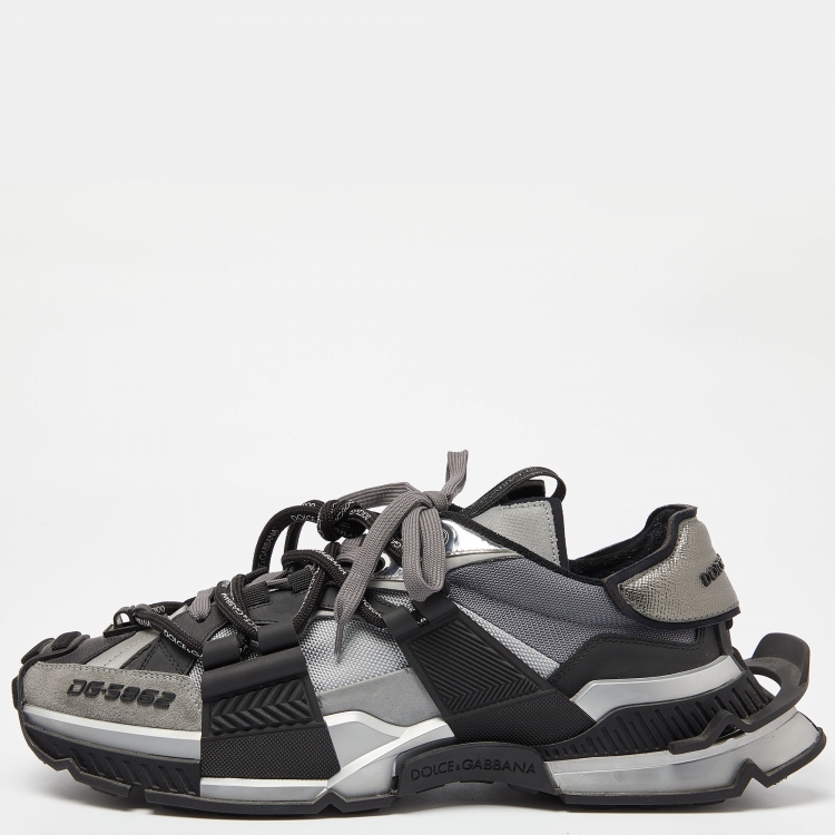Dolce & Gabbana Grey/Black Mesh and Suede Space Sneakers Size 46