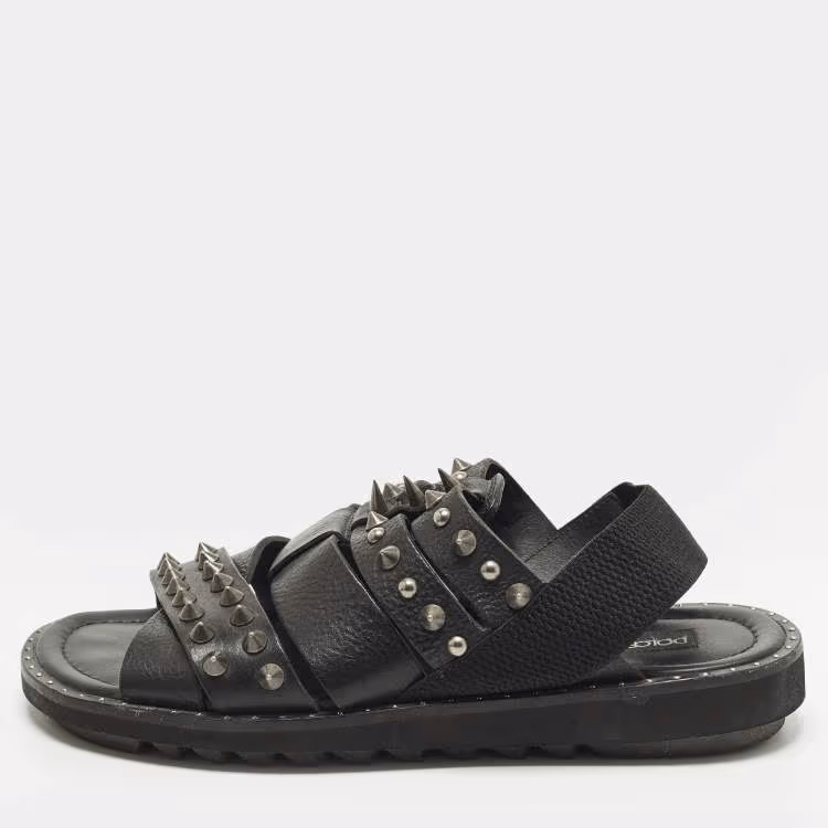 Pre Owned صندل دولتشي أند غابانا جلد أسود بسيور متقاطعة ومسامير مقاس 42