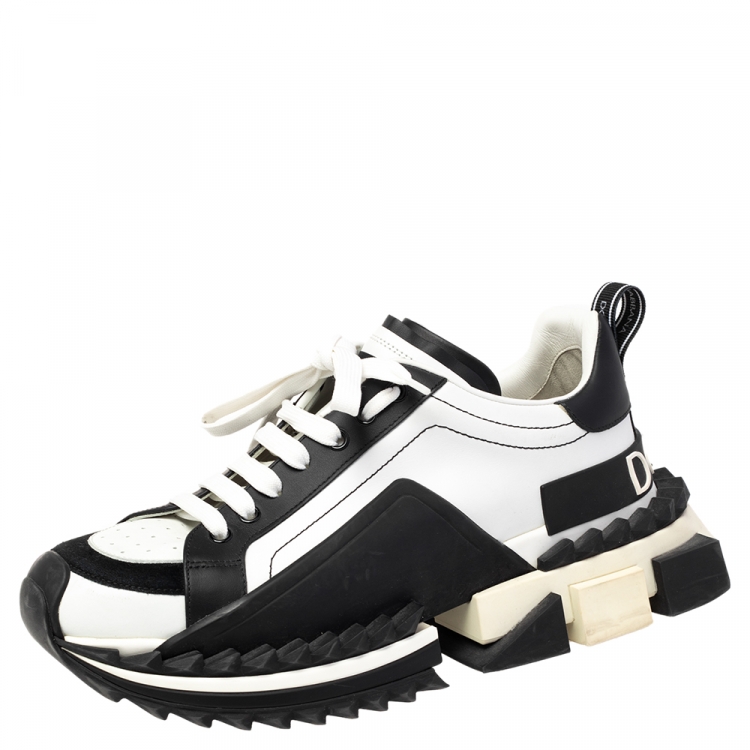 حذاء رياضي دولتشي أند غابانا سوبر كينغ جلد وسويدي أبيض/أسود بعنق منخفض مقاس 40