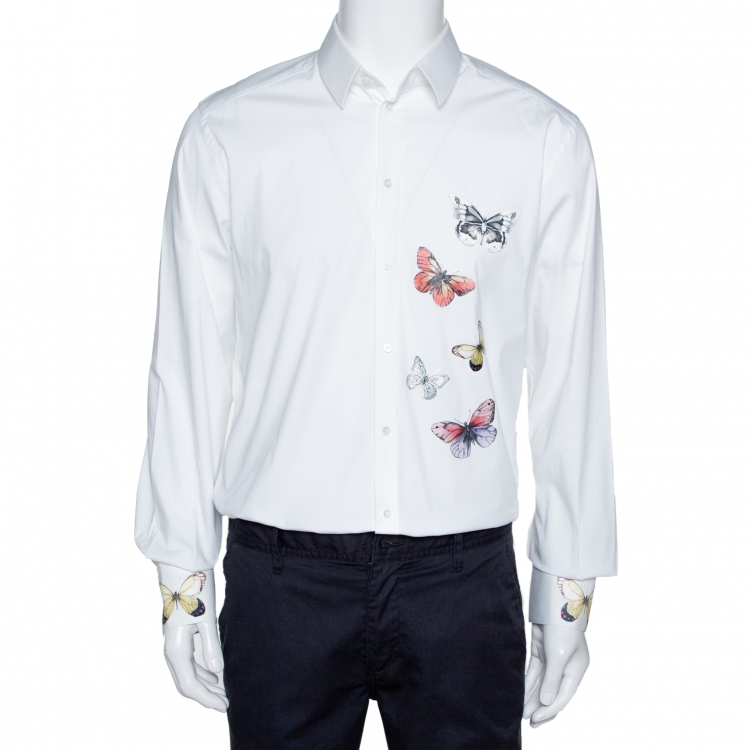 مملوكة مسبقًا تي شيرت دولتشي أند غابانا قطن أبيض حلية فراشة بأزرار أمامية كبير جدًا جدًا (إكس إكس لارج)