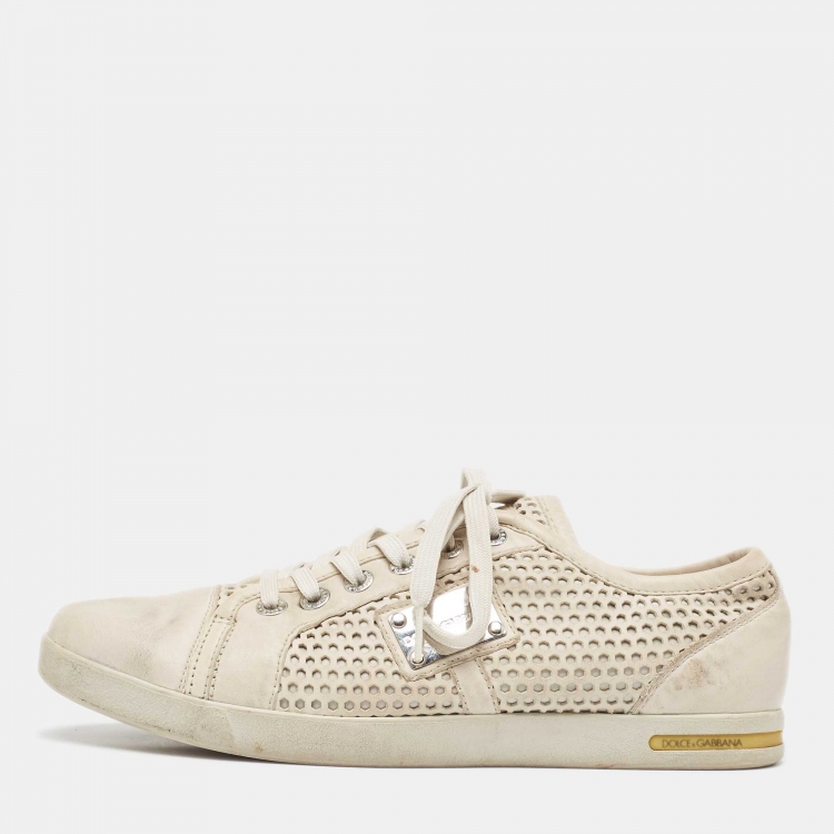 Dolce & Gabbana White Laser Cut Leather Low Top Sneakers Size 42