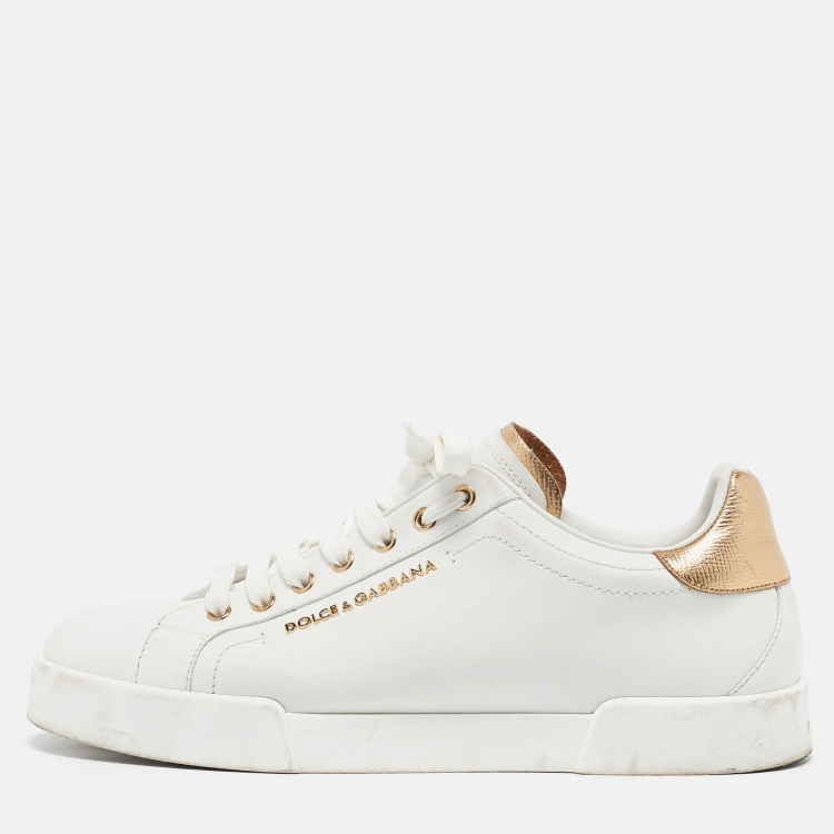 Pre Owned حذاء رياضي دولتشي أند غابانا بورتوفينو جلد أبيض / أسود رباط علوي مقاس 42.5