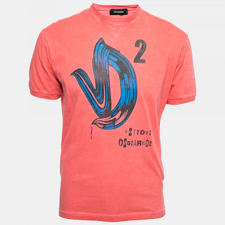 Dsquared2 Pink Logo Print Cotton New Dean Fit T-Shirt L