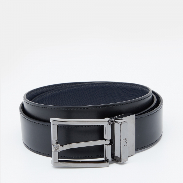 Pre Owned حزام دنهل جلد أزرق كحلي/أسود ذو وجهين بإبزيم 107 سم