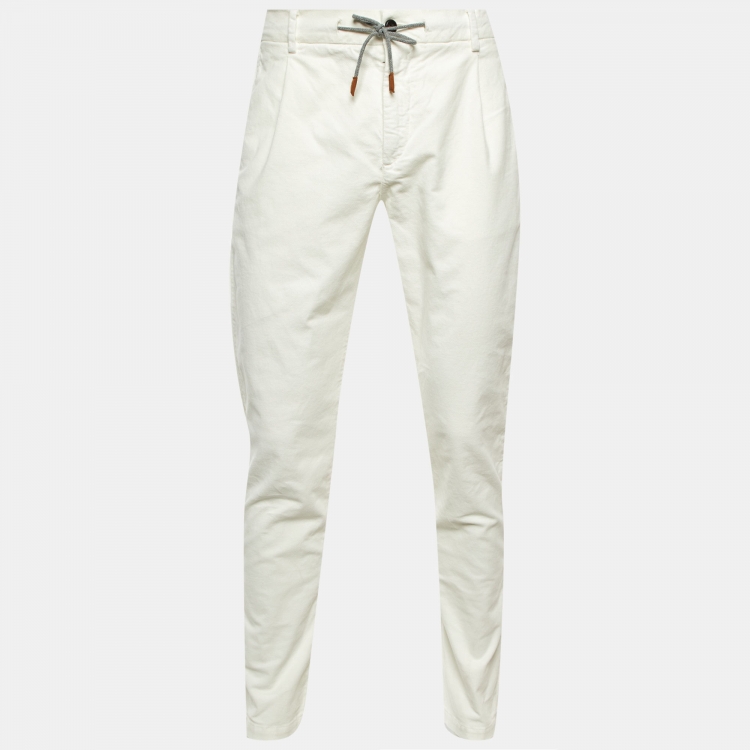 Pre Owned بنطلون إليفنتي قطن أبيض فيلور برباط خصر مقاس متوسط