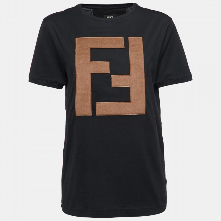 مملوكة مسبقًا Fendi Black Cotton FF Applique T-Shirt M