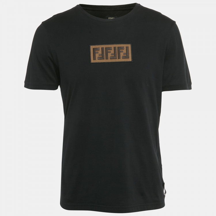 Pre Owned تي شيرت فنْدي جيرسي مُزين بتصميم زوكّا أسود مقاس كبير (لارج)