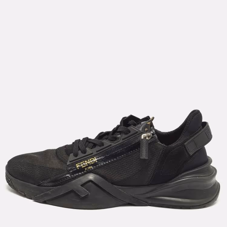 حذاء رياضي فندي فلو شبك وجلد شامواه أبيض مقاس 41