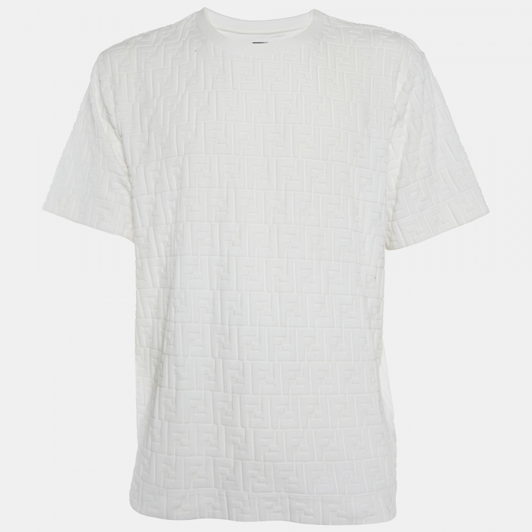 Fendi White Zucca Embossed Cotton Crew Neck T-Shirt L