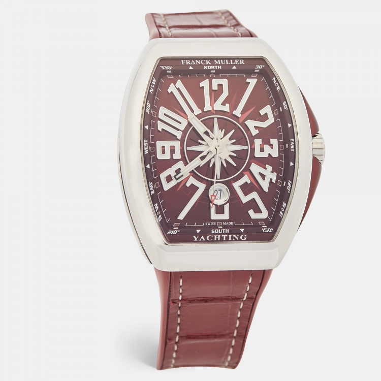 Pre Owned Franck Muller Burgundy Stainless Steel Rubber Alligator Leather Vanguard Yachting V 45 SC DT AC BO Men's Wristwatch 45 mm