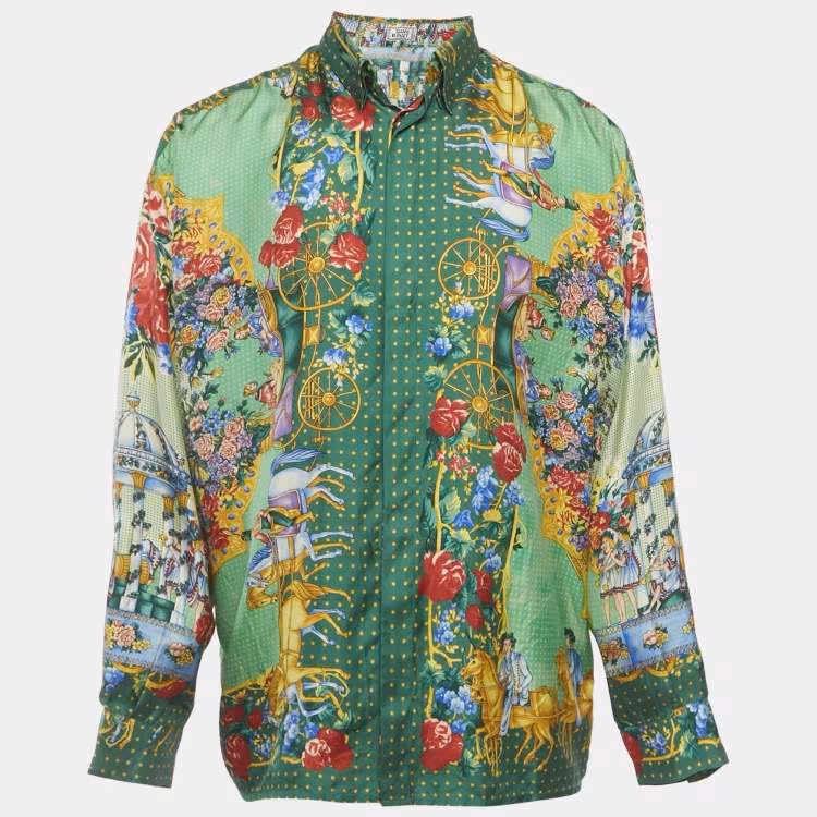 جياني فيرساتشي قميص حريري بطبعة خضراء كبير الحجم كبير