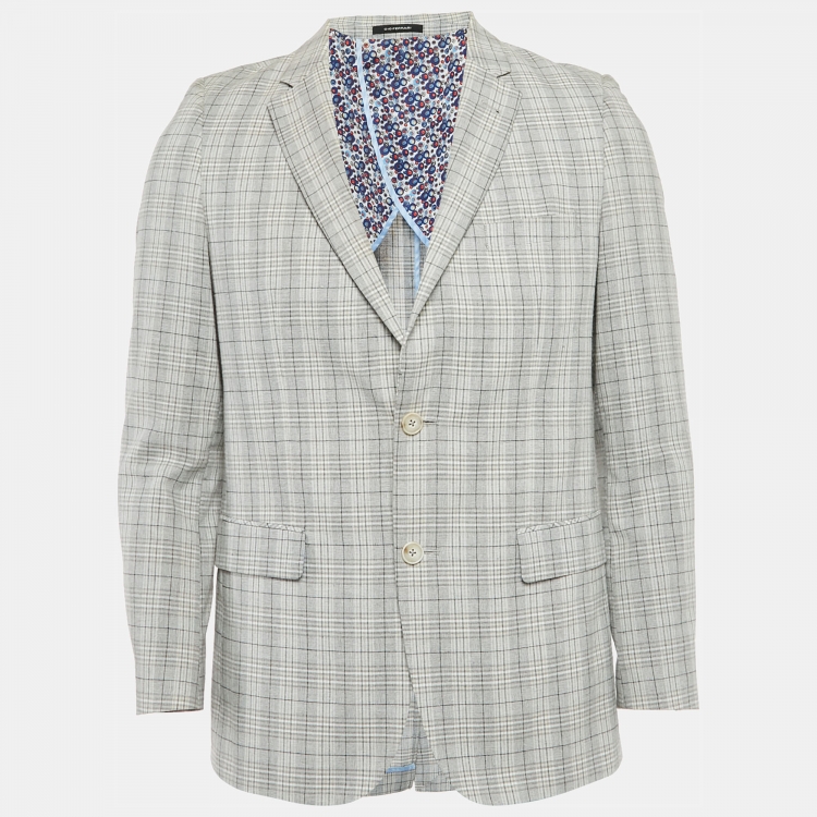 مملوكة مسبقًا جاكيت جيو فيراري صوف مزيج رمادي مربعات صغير