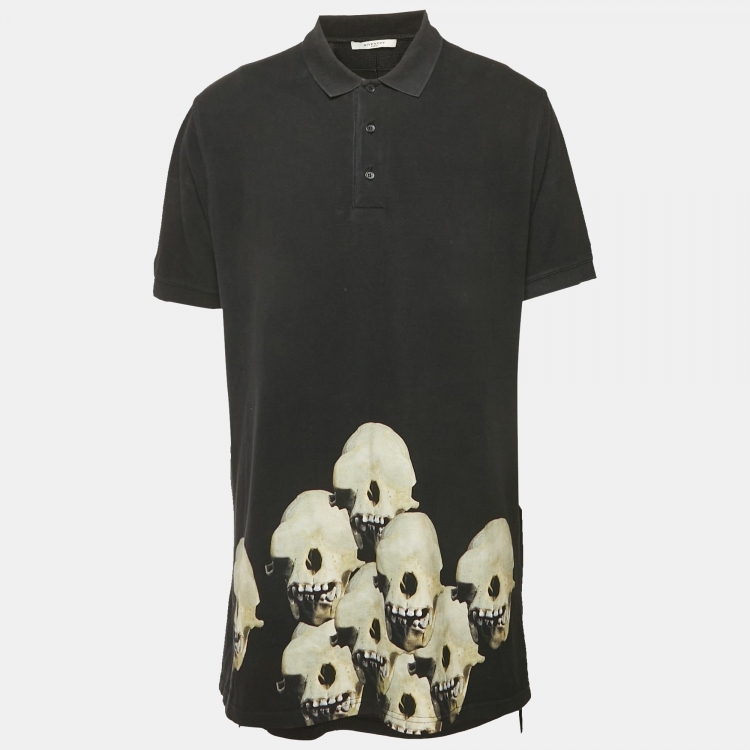 Pre Owned تي شيرت بولو جيفنشي قطن بيك أسود مطبوع جمجمة مقاس كبير جدًا (اكسترا لارج)
