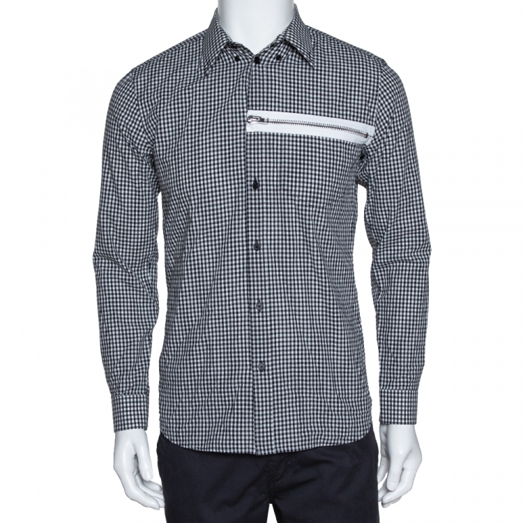 Pre Owned قميص جيفنشي تفاصيل سحاب قطن كاروهات غنغهام مونوكروم S