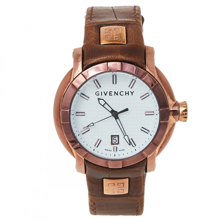 Pre Owned ساعة يد رجالية جيفنشي GV5202.M جلد و ستانلس ستيل برونزي اللون بيضاء 45 م�م