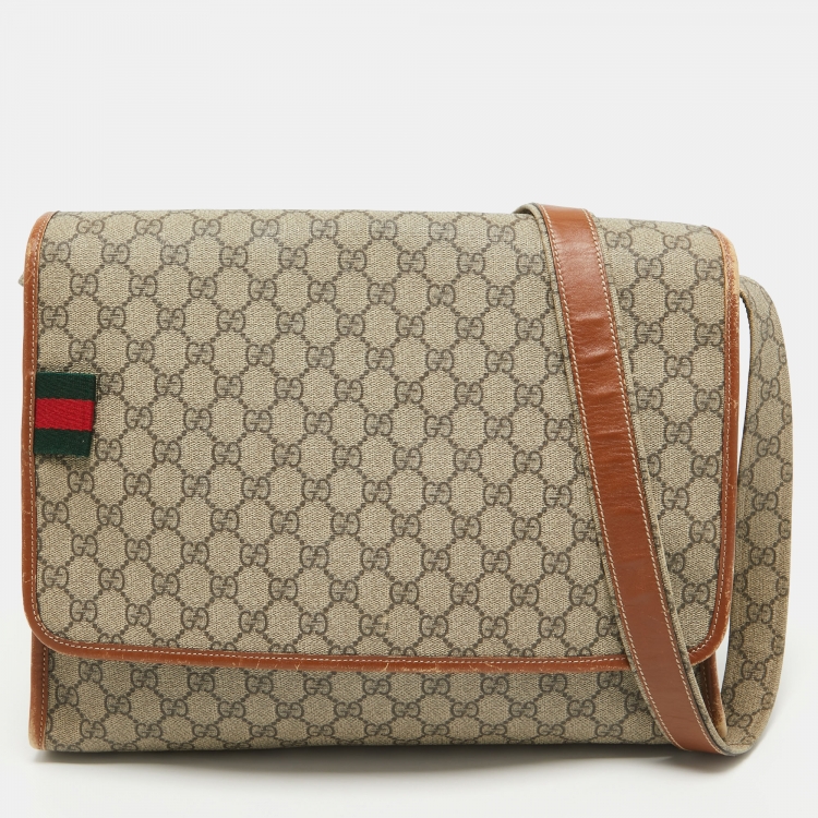مملوكة مسبقًا حقيبة ماسنجر غوتشي جلد وكانفاس جي جي سوبريم بني/بيج