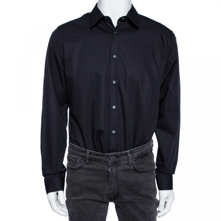 Pre Owned قميص غوتشي قطن أسود أزرار أمامية قصة مجسمة مقاس كبير جداً جداً (اكس اكس لارج)