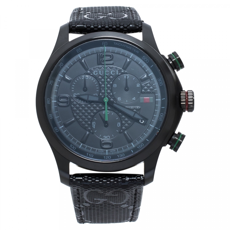 مملوكة مسبقًا ساعة يد رجالية غوتشي "جي-تايمليس واي ايه126244" ستانلس ستيل پي ڨي دي أسود 44 مم