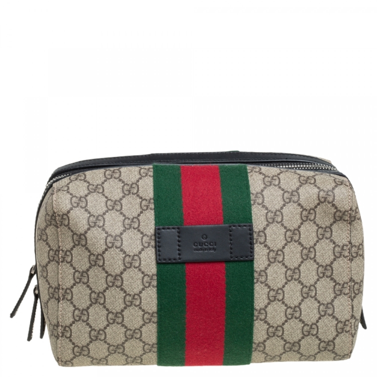 حقيبة صغيرة غوتشي ويب تواليتري جلد وكانفاس سوبريم جي جي بيج/ أسود