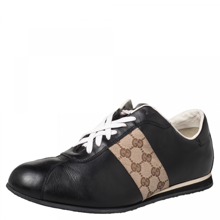 حذاء رياضي غوتشي كانفاس وجلد بيج/أسود منخفض من أعلى مقاس 45