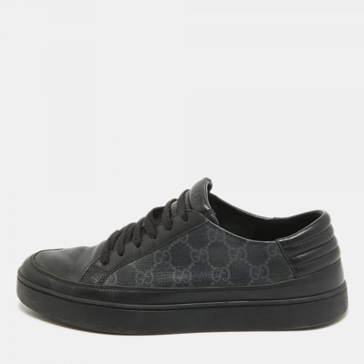 Gucci Black/Grey GG Canvas and Leather Low Top Sneakers Size 41.5
