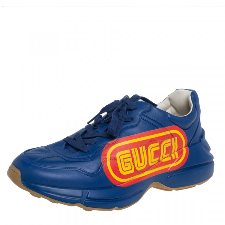 حذاء رياضي غوتشي ريتون مزين شعار الماركة منخفض من أعلى جلد أزرق مقاس 42