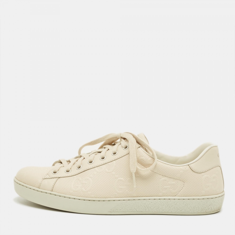 حذاء رياضي غوتشي ربط جِلد مثقّب كريمي مقاس 45.5