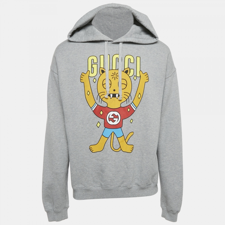 مملوكة مسبقًا سويت شيرت غووتشي قطن رمادي مطبوع مقاس متوسط - ميديم