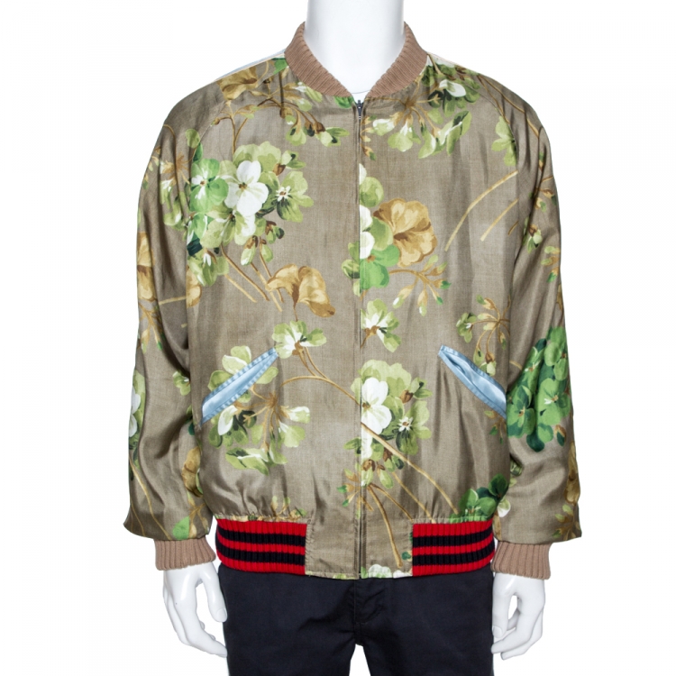 جاكت غوتشي منفوخ ذو وجهين طباعة زهور حرير متعددة الألوان XXXL