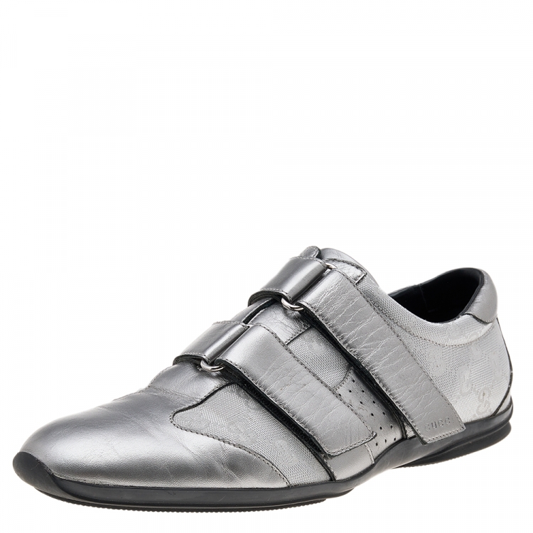 Pre Owned حذاء رياضي غوتشي فيلكرو جلد وكانفاس جي جي فضي مقاس 42.5