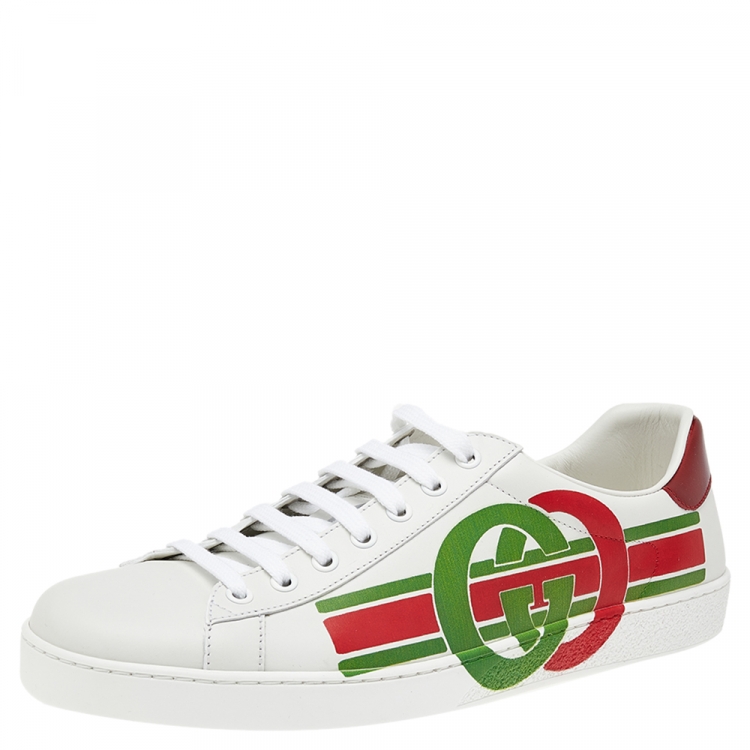 حذاء رياضي غوتشي G أيس جلد أبيض متشابك مقاس 43.5