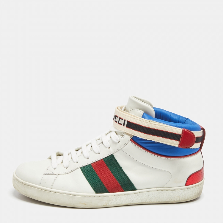 Gucci White Leather Stripe Ace High Top Sneakers Size 41.5