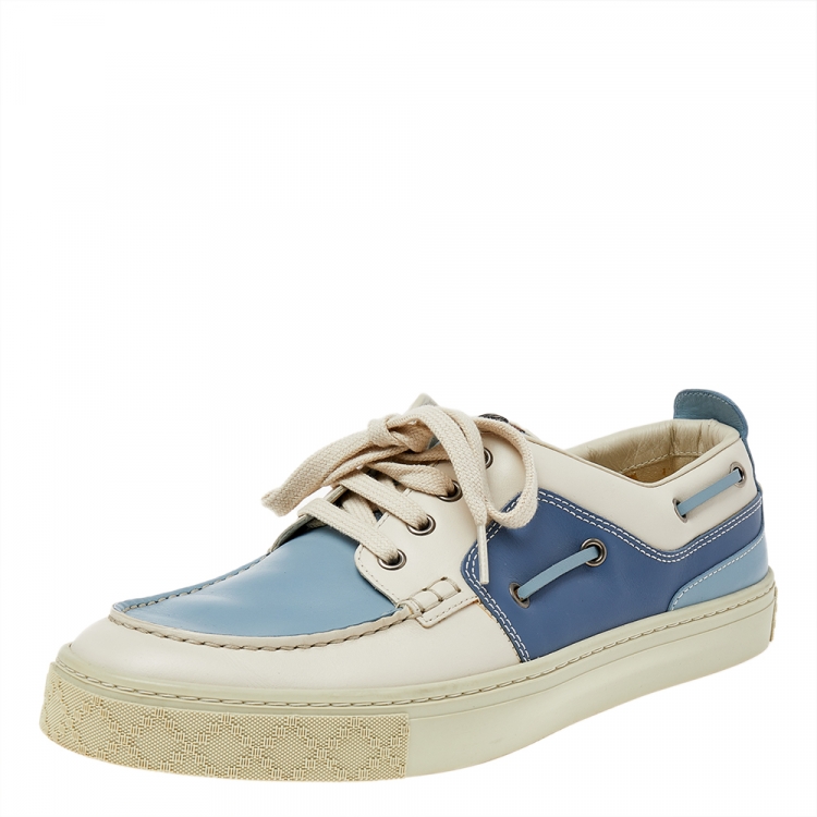 مملوكة مسبقًا حذاء رياضي غوتشي جلد أبيض/أزرق عنق منخفض مقاس 42.5