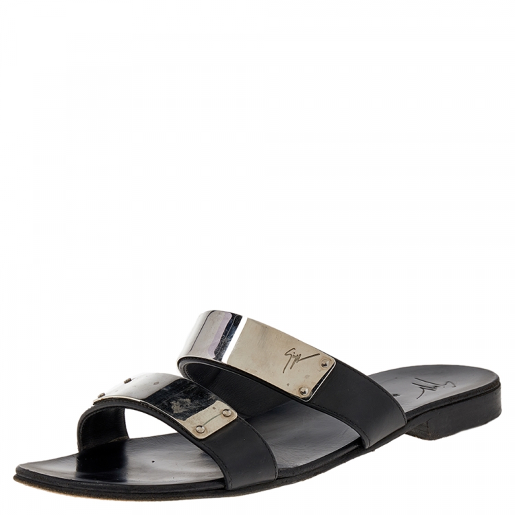 Pre Owned صندل سلايد جوسيبي زانوتي جلد أسود مقاس 41.5