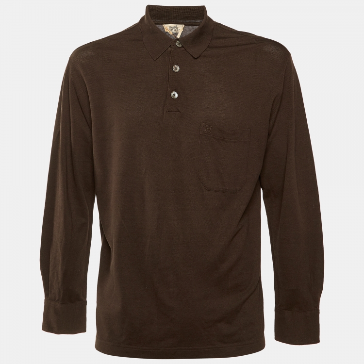 Pre Owned قميص هيرمس قطن مخطط أزرق بأزرار أمامية أكمام طويلة مقاس ميديوم