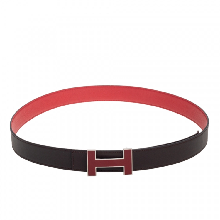 Pre Owned حزام هيرمس شاموني و إيفركلور كاساك H روج/موكا بوجهين 100 سم
