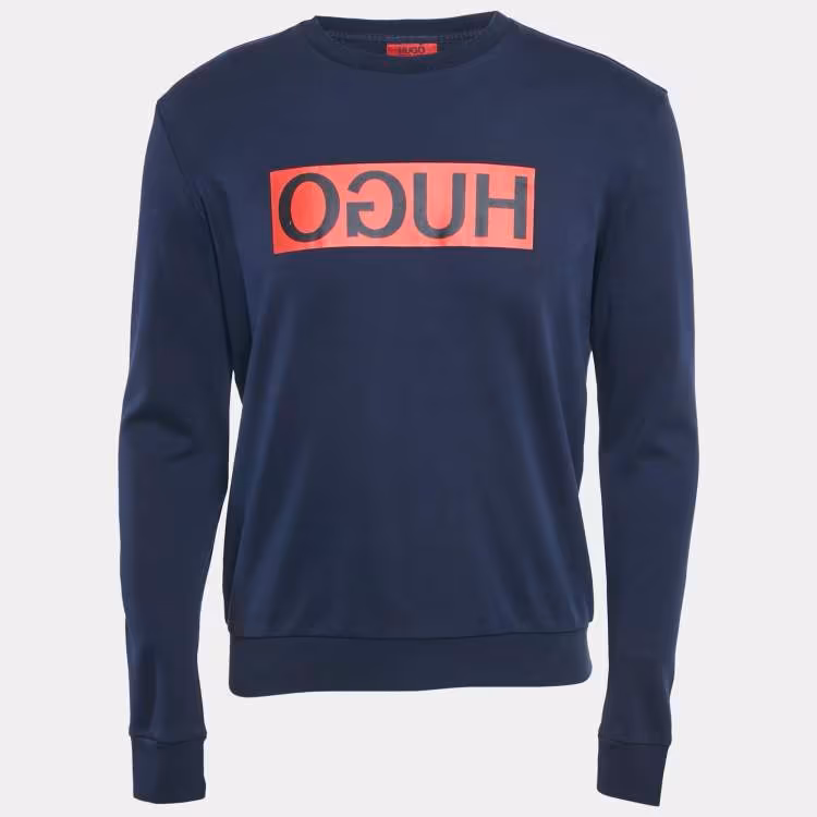 Pre Owned بلوفر هوغو بوس أزرق بشعار قطن ياقة دائرية مقاس متوسط