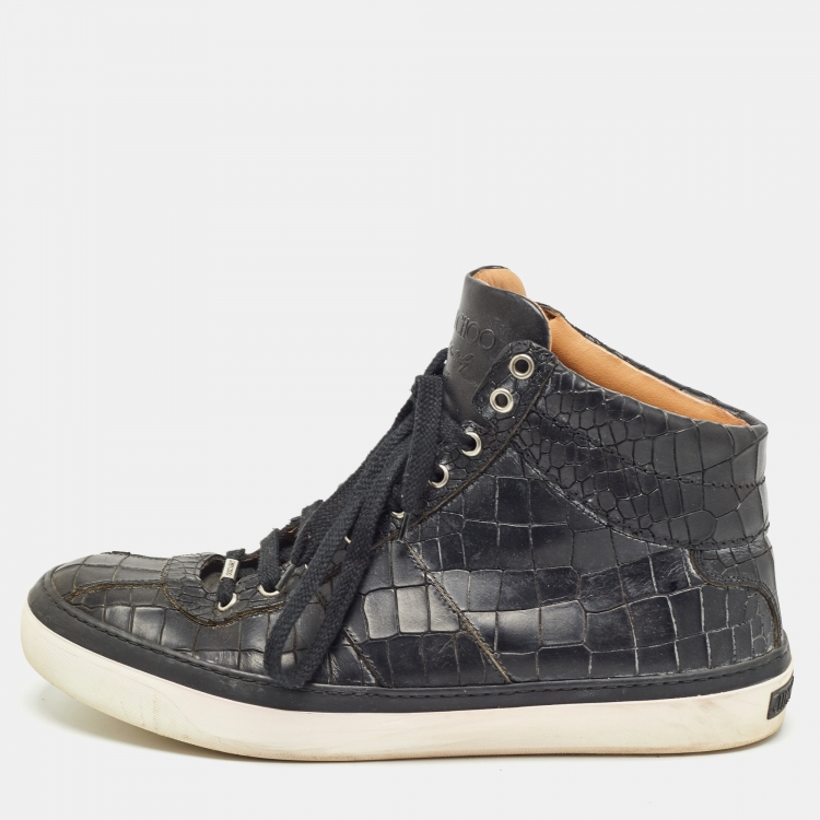 Pre Owned Jimmy Choo Black  Croc Embossed Belgravia Sneakers Size 45