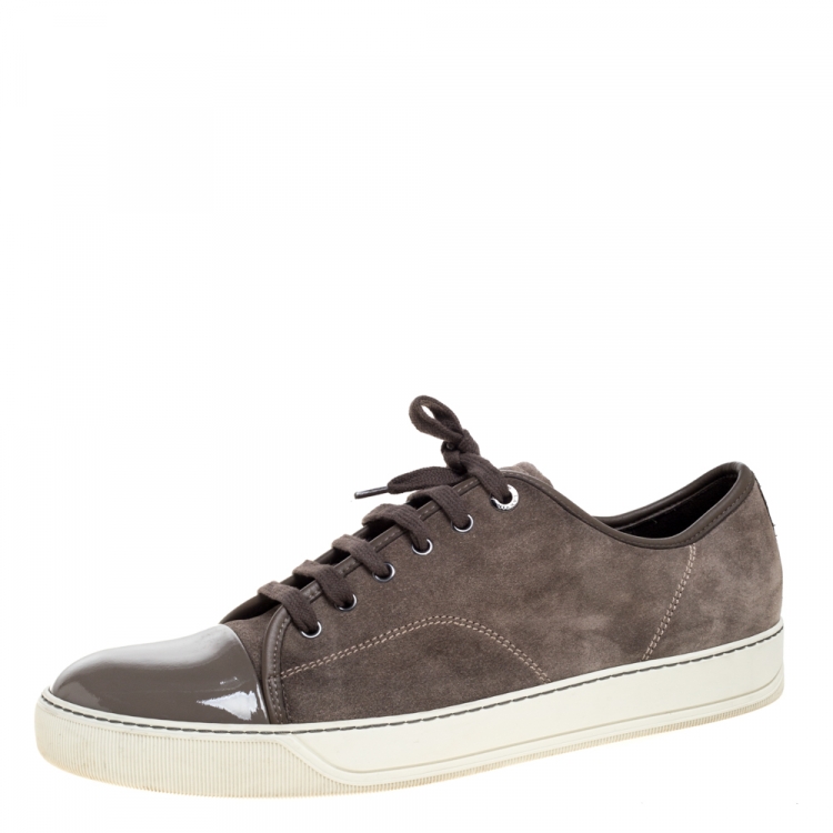 مملوكة مسبقًا حذاء رياضي لانفان سويدي وجلد لامع رصاصي داكن بعنق منخفض مقاس 45