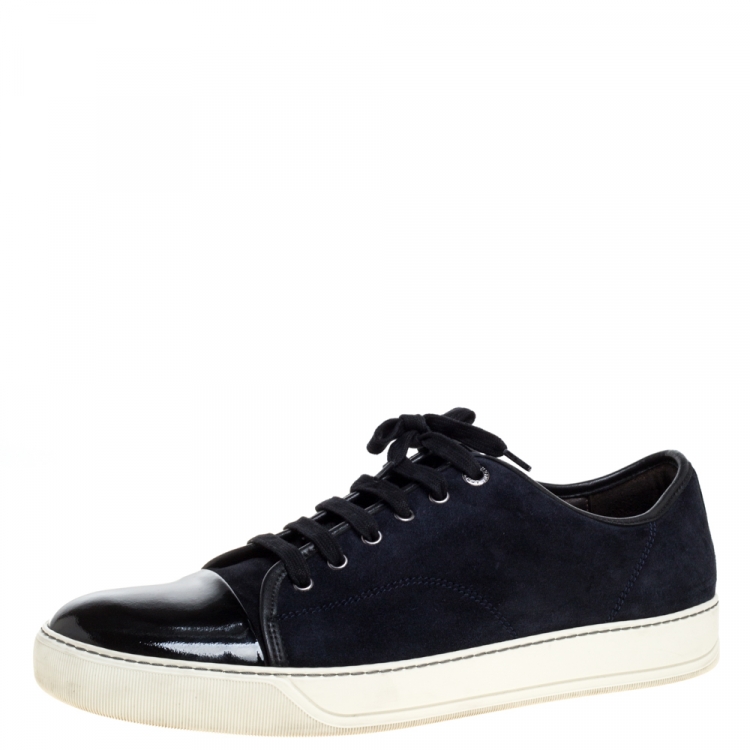 Pre Owned حذاء رياضي لانفان "دي دي بي1" �طراز منخفض من أعلى سويدي و جلد لامع أزرق كحلي مقاس 45