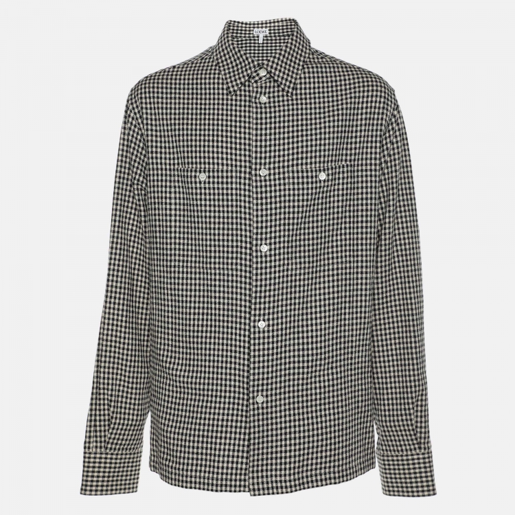 قميص لويفي نقش مربعات أسود/أبيض قطن أزرار من الأمام مقاس صغير جداً (إكس إكس سمال)
