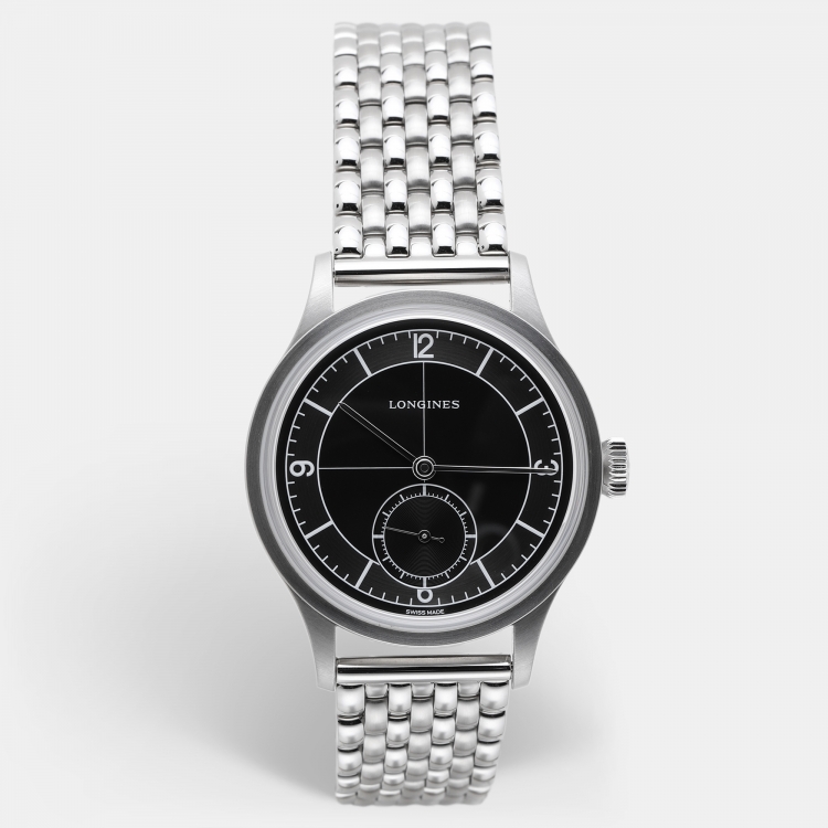 ساعة يد رجالية لونجين هيرتيج L2.828.4.53.6 ستانلس ستيل سوداء فضية 38 مم