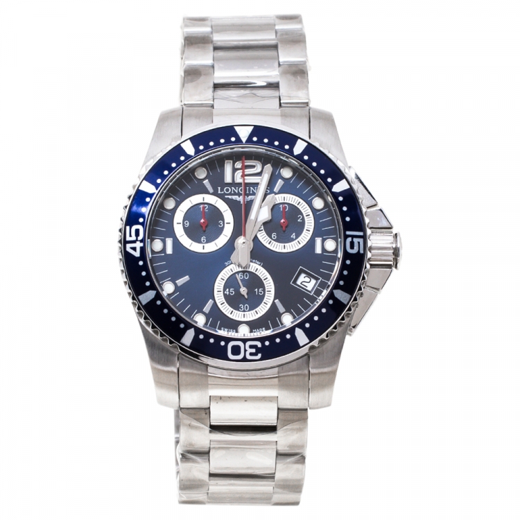 ساعة يد رجالية لونجين هيدرو كونكويست أل3.643.4.96.6 ستانلس ستيل زرقاء 41 مم