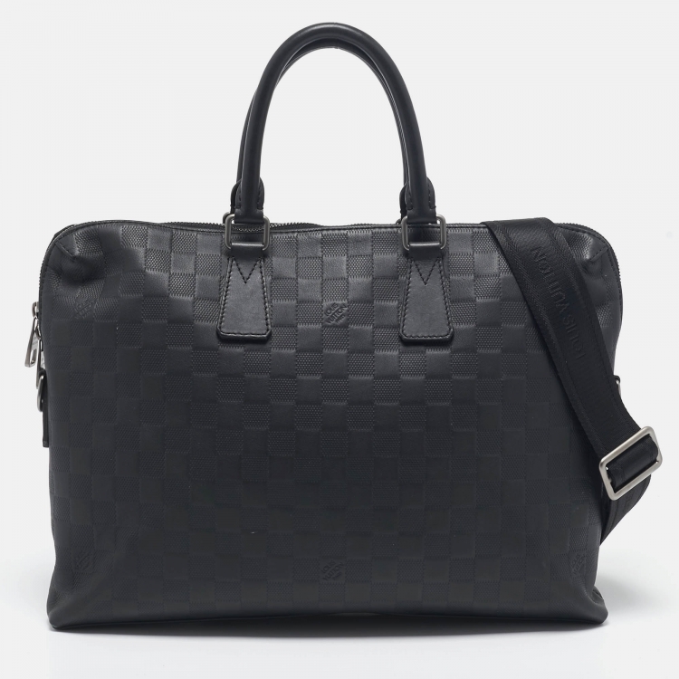 Pre Owned حقيبة لوي فيتون بورت دوكومنتز فواياج جلد تاغيا أسود PM