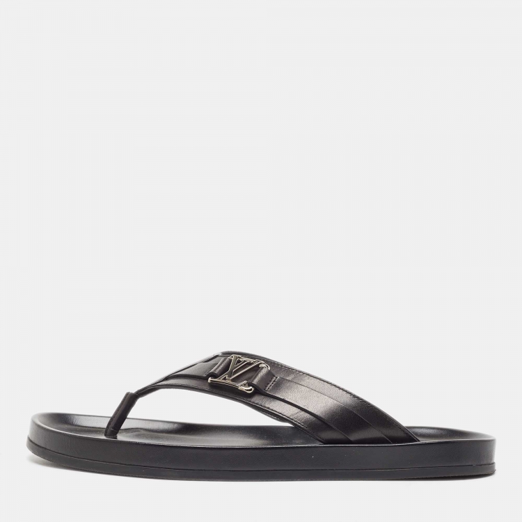 Pre Owned Louis Vuitton Black Leather Thong Flat Slides Size 42