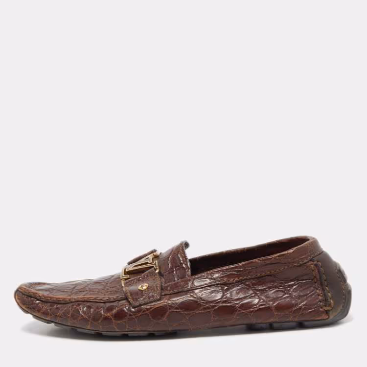 حذاء لوفرز لوي فيتون مونتي كارلو جلد تمساح بني مقاس 42.5