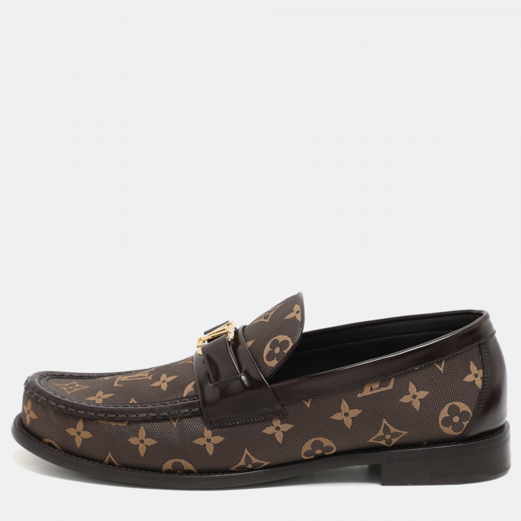 Pre Owned حذاء لوفرز لويس فيتون جاكار مونوغرام بني وجلد ماكاسار مقاس 43.5