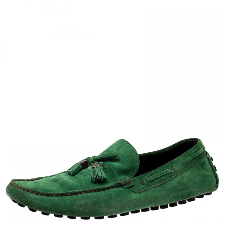 حذاء لوفرز لوي فيتون امولا بشراريب سويدي أخضر مقاس 44